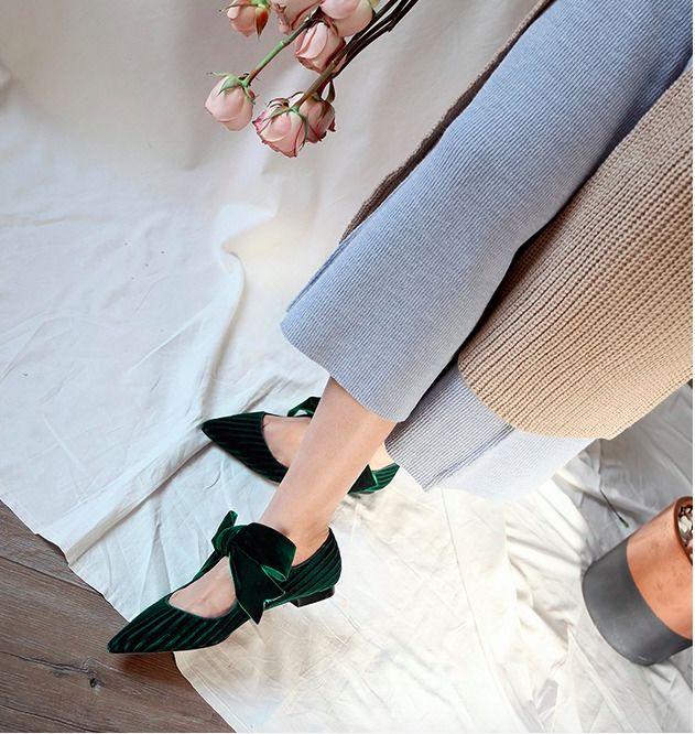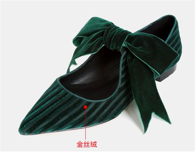 【保养攻略】丝绒材质的鞋子,切忌用湿布和鞋油擦拭,若鞋面有尘土或遇水打湿,要让鞋面自然干燥,再用软毛刷顺毛方向去除鞋面上的尘土。